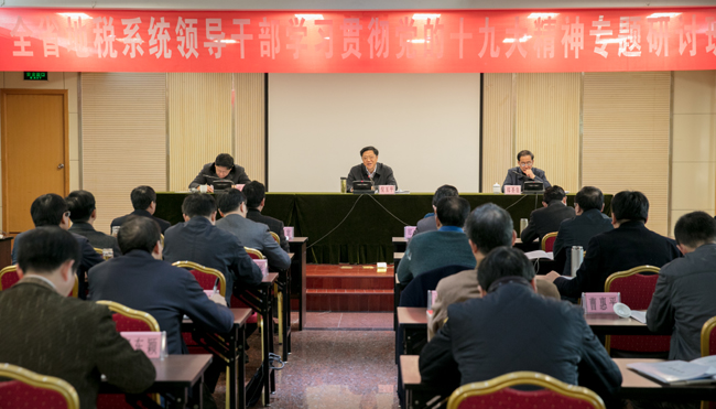 本次研讨班为期5天,重点围绕学习贯彻十九大精神开展讲座、研讨、座谈等。其间,倪玉平同志作了法治专题讲座。省局局属各单位主要负责人,各市、省直管县地税局主要负责人参加研讨班。重要专题辅导通过视频方式扩大到全省地税系统干部职工。