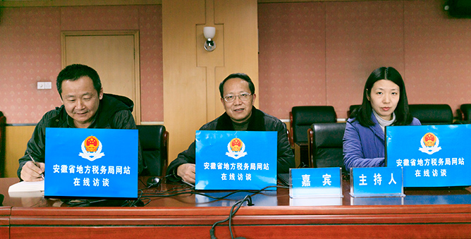 | | 访谈主题:“深化征管体制改革”主题在线访谈 | | 访谈嘉宾:安徽省地税局征管科技处处长 李长富 安徽省地税局征管科技处副处长 汪 愉 安徽省地税局纳税服务处副主任科员 黄 平 | | 访谈时间:2016-11-10 | | | | |